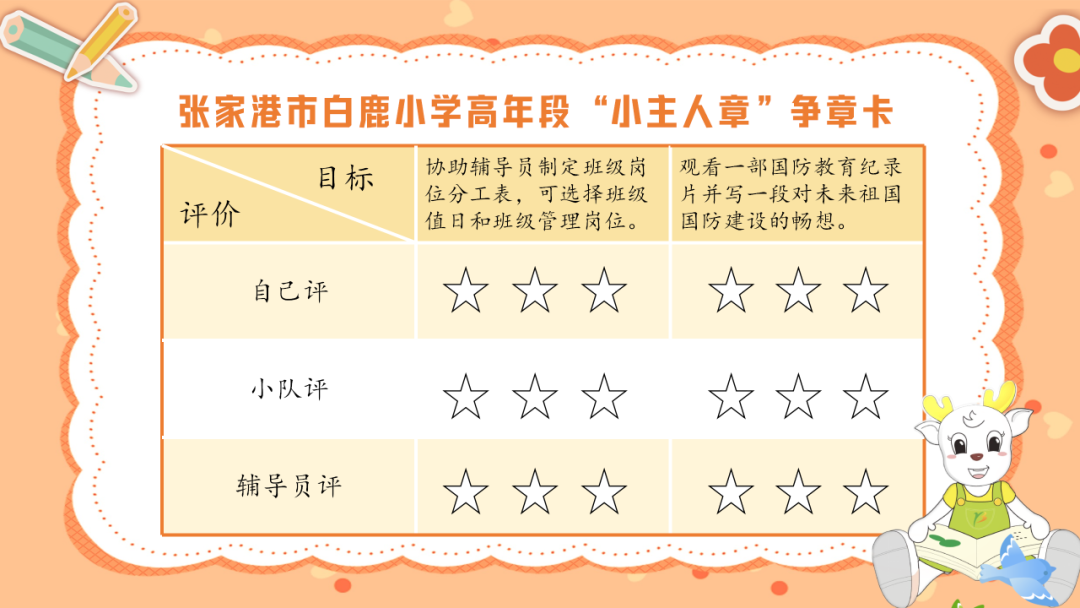 小主人章:热爱人民教育;公民道德教育;法治教育;国防教育等。