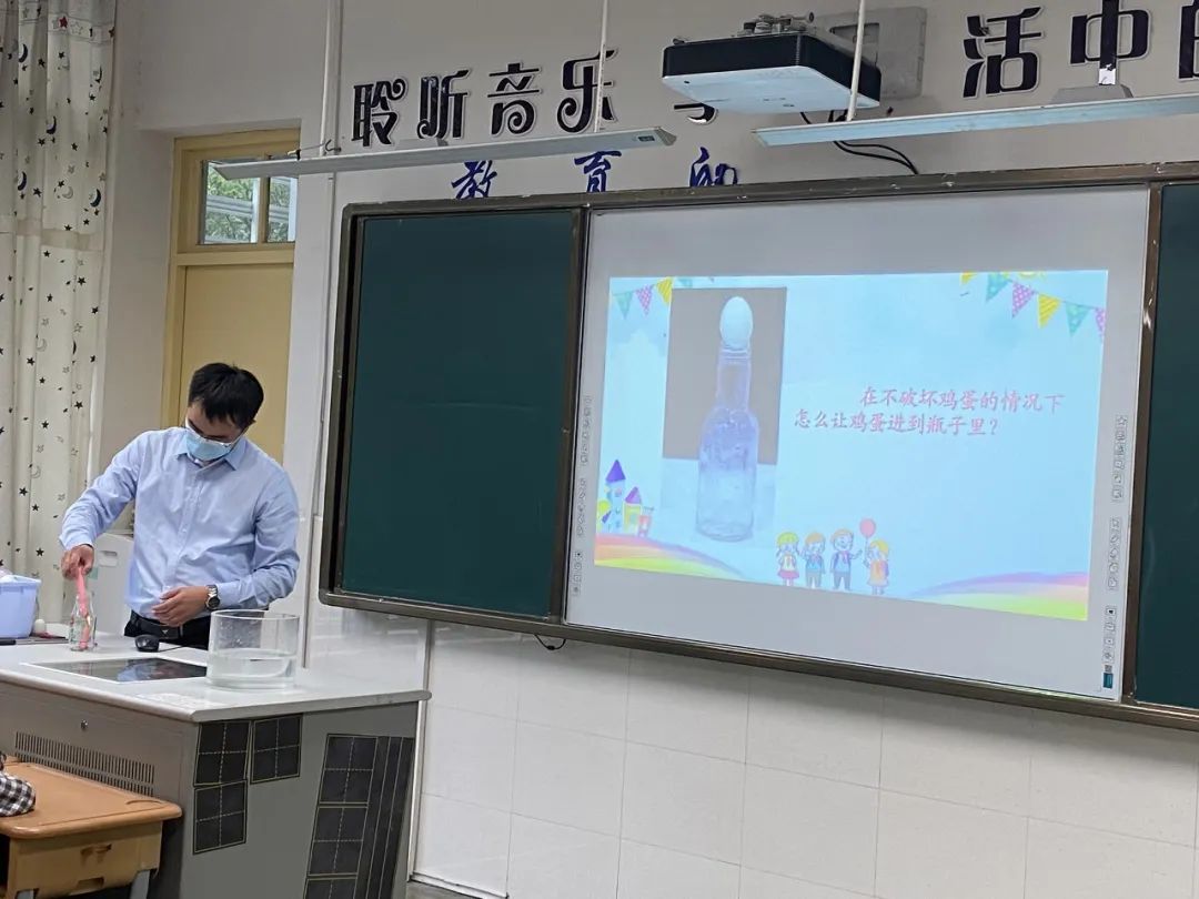 思考:在不破坏鸡蛋的情况下,我们怎么让鸡蛋进到瓶子里?