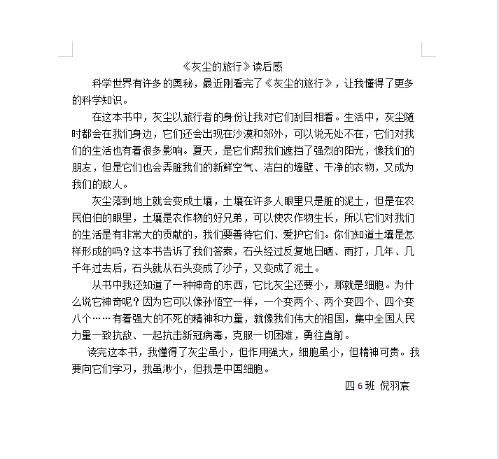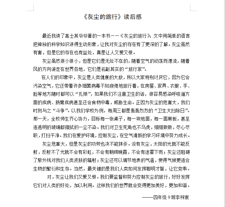 在老师的组织下,孩子们开展了《灰尘的旅行》“共读一本书”的读书交流活动。大家在台上分享着自己的阅读体会,或娓娓道来,或慷慨激昂。交流中,大家对《灰尘的旅行》这本书又有了更深的认识。