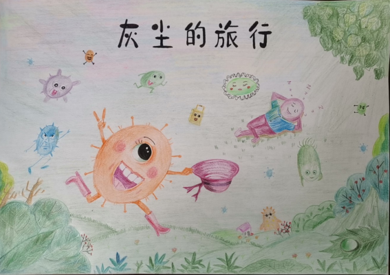 在读完书后,孩子们自发拿起了画笔,把自己想象中“灰尘的旅行”的奥秘画了出来,色彩丰富,又充满了童真童趣。有的孩子还在图画旁标注了科学小知识,读来既有趣,又有意义。