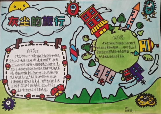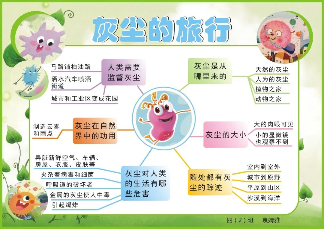 孩子们还根据自己的理解为“灰尘的旅行”精心绘制了思维导图,让大家能够更加清晰、更加直观地了灰尘究竟是怎样旅行的,也让更多的人喜欢上了这本书。
