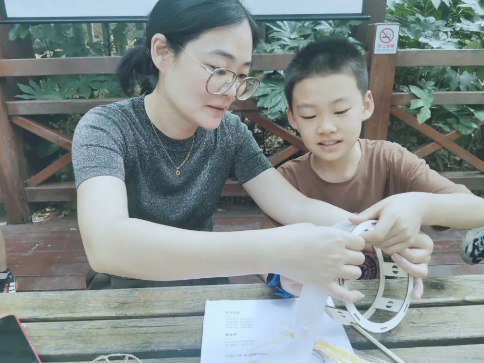 中秋的节日氛围,怎么能少的了灯笼?这不,爸爸妈妈和孩子们就一起动手做起来啦,好不专注。